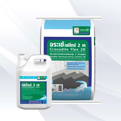 - Chống Thấm Crocodile Flex 2K là vật liệu chống thấm 2 thành phần gốc xi măng. Flex 2K tạo thành lớp màng có khả năng chống thấm và đàn hồi. Có thể dùng cho các bề mặt nền khác nhau như bê tông, vữa xi măng, gạch đất sét, gạch đất nung, gạch block bê tông,… Độ đàn hồi cao, phù hợp cho bề mặt đàn hồi. Có thể phủ lên bề mặt trước khi ốp lát gạch, chịu áp lực nước cao.